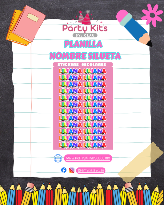 Stickers escolares Silueta Nombre (Etiquetas escolares) 2025
