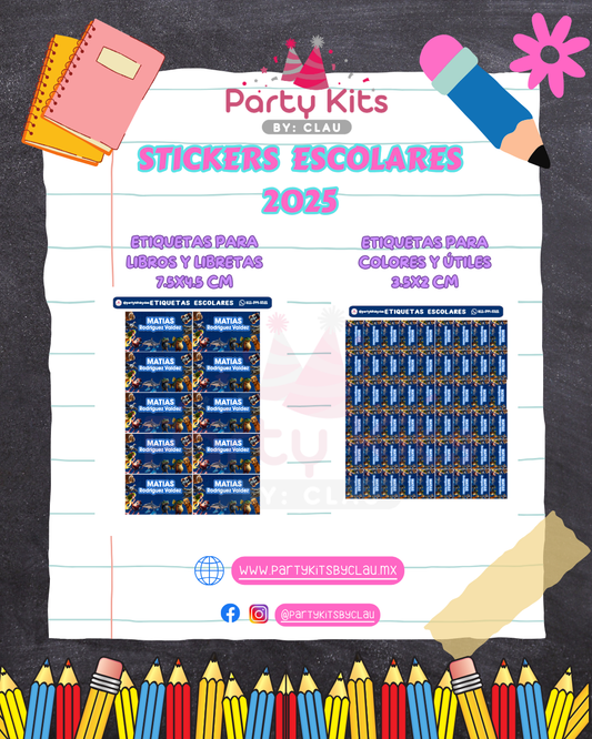 Stickers escolares, personaje personalizado (Etiquetas escolares) 2025