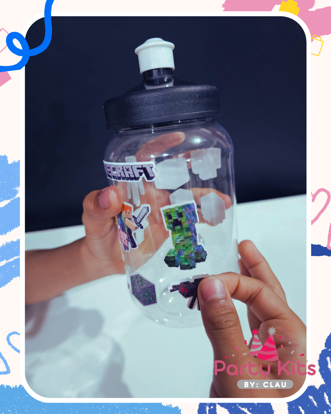 Ideal para que los niños se diviertan decorando su propio bote con los stickers de la temática de tu fiesta o la que tu desees.