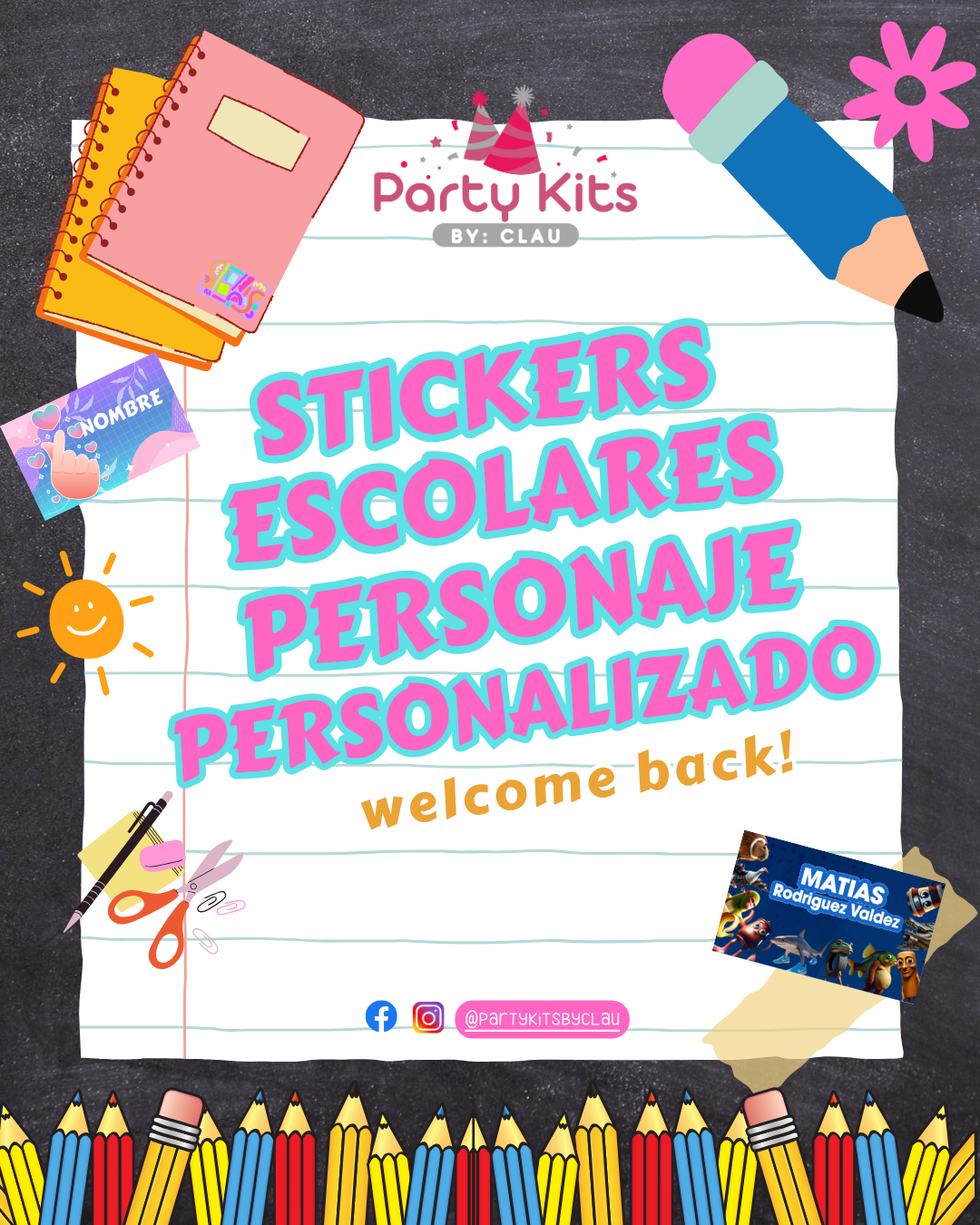 Stickers escolares 2025 (PERSONAJE PERSONALIZADO)