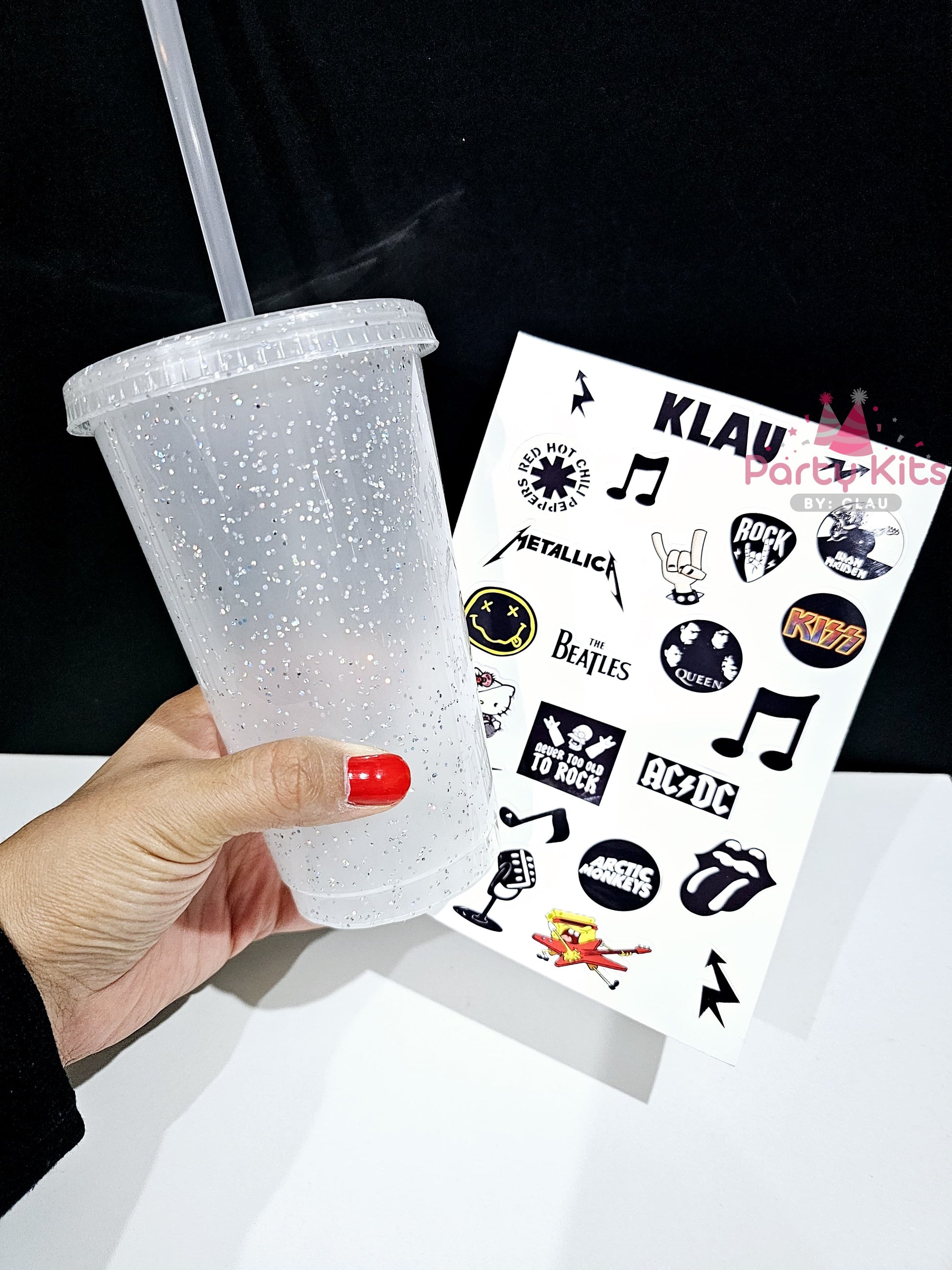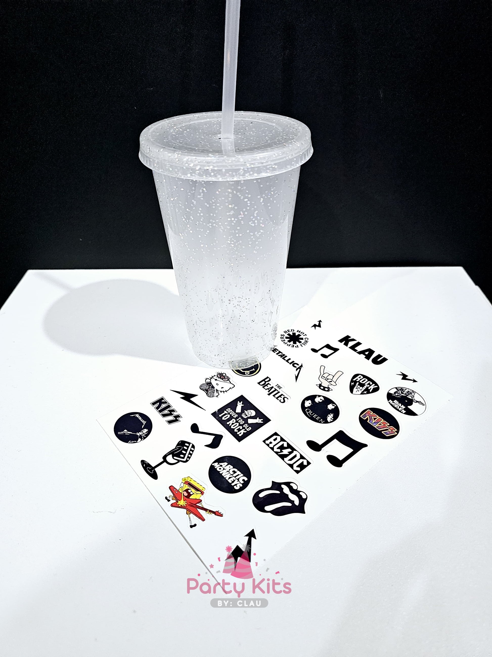 Vaso Glitter 16 Oz con planilla de stickers personalizada